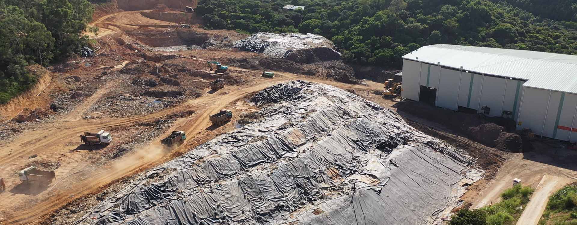 寮步镇刘屋巷垃圾填埋场和上底垃圾填埋场由于莞番高速寮步段的规划道路穿过刘屋巷填埋场和上底填埋场,因垃圾堆体影响高速建设,现将占规划道路内的垃圾进行清理搬迁筛分,刘屋巷填埋场及上底填埋场的开挖区域的固废垃圾存量约为95万m³,处理工期为268天。广东天天盈球集团有限公司负责寮步垃圾填埋场整治项目中上底筛分厂及刘屋巷分筛厂的投资、设计、建设、运营及维护。上底筛分厂占地面积约3700㎡,厂房配备2套筛分设备,4条生产线,设备设计日处理量达4000m³;刘屋巷筛分厂占地面积约3500㎡,厂房配备2套筛分设备,4条生产线,设备设计日处理量达2000m³。