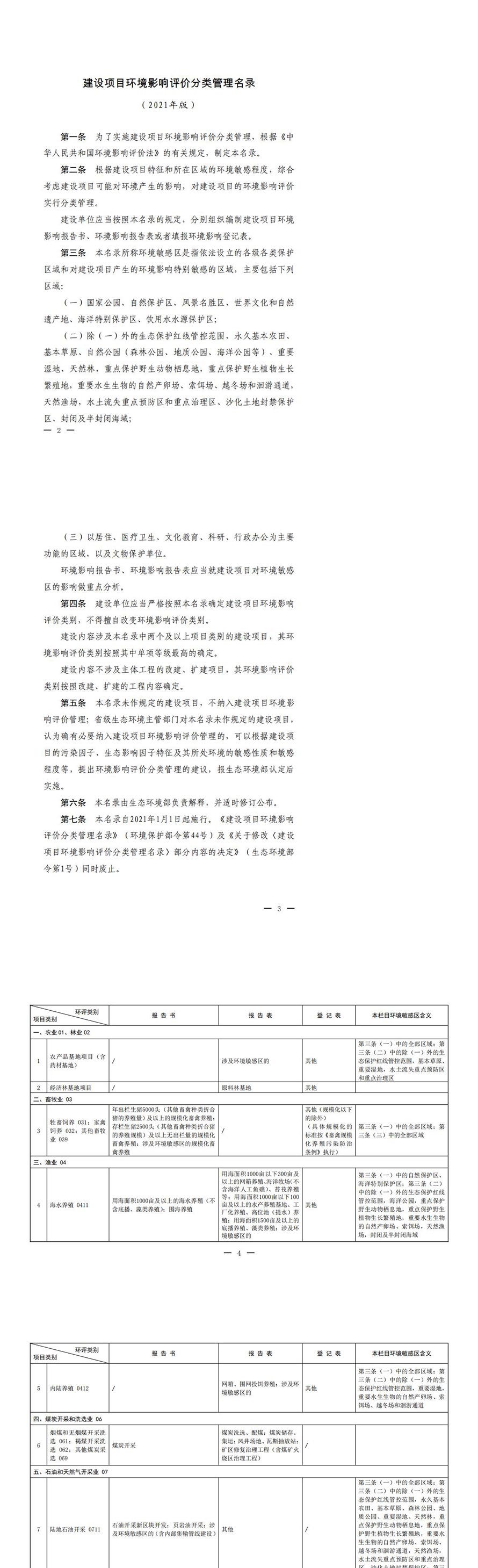 《建设项目环境影响评价分类管理名录(2021年版)》已于2020年11月5日由生态环境部部务会议审议通过,现予公布,自2021年1月1日起施行。